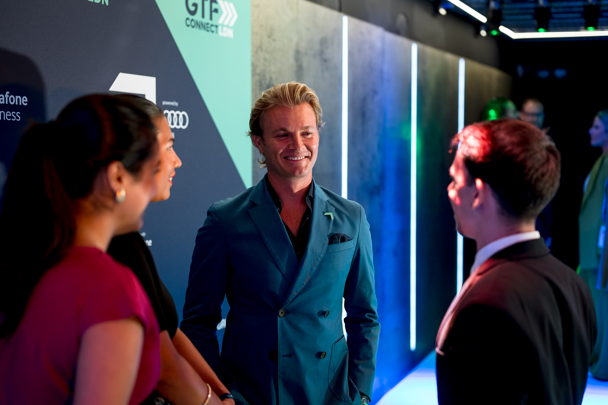 The second day focused on the conference sessions and speaker programme. The Box was set in a theatre layout, with a custom backdrop behind the stage and lighting reflecting the festival’s brand colours. This created a cohesive visual identity while supporting AV needs for keynotes and panels. Notable speakers included Mary Robinson, Dale Vince, Christopher Engman, and Nico Rosberg, who delivered insights across sustainability, energy innovation, and business strategy.