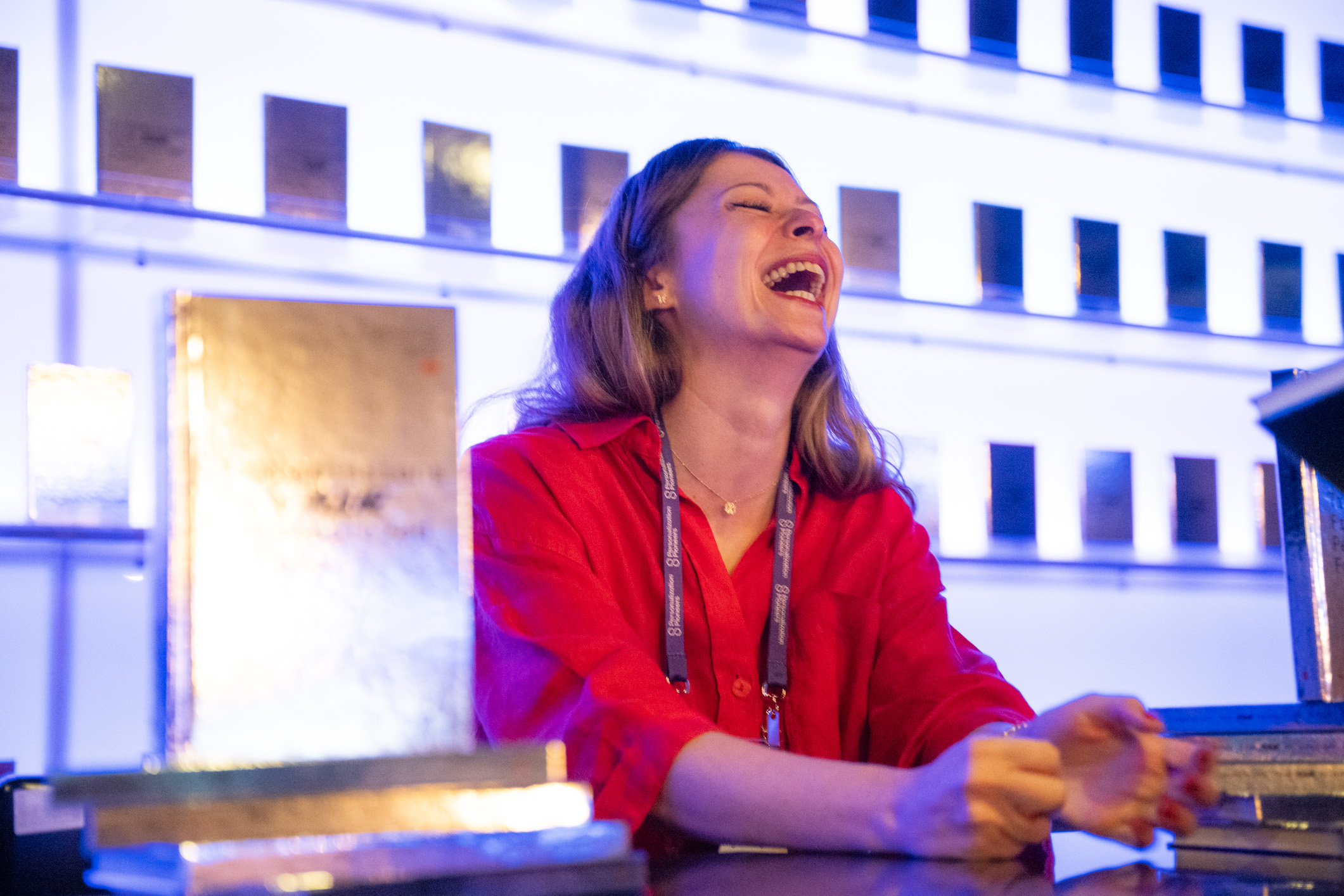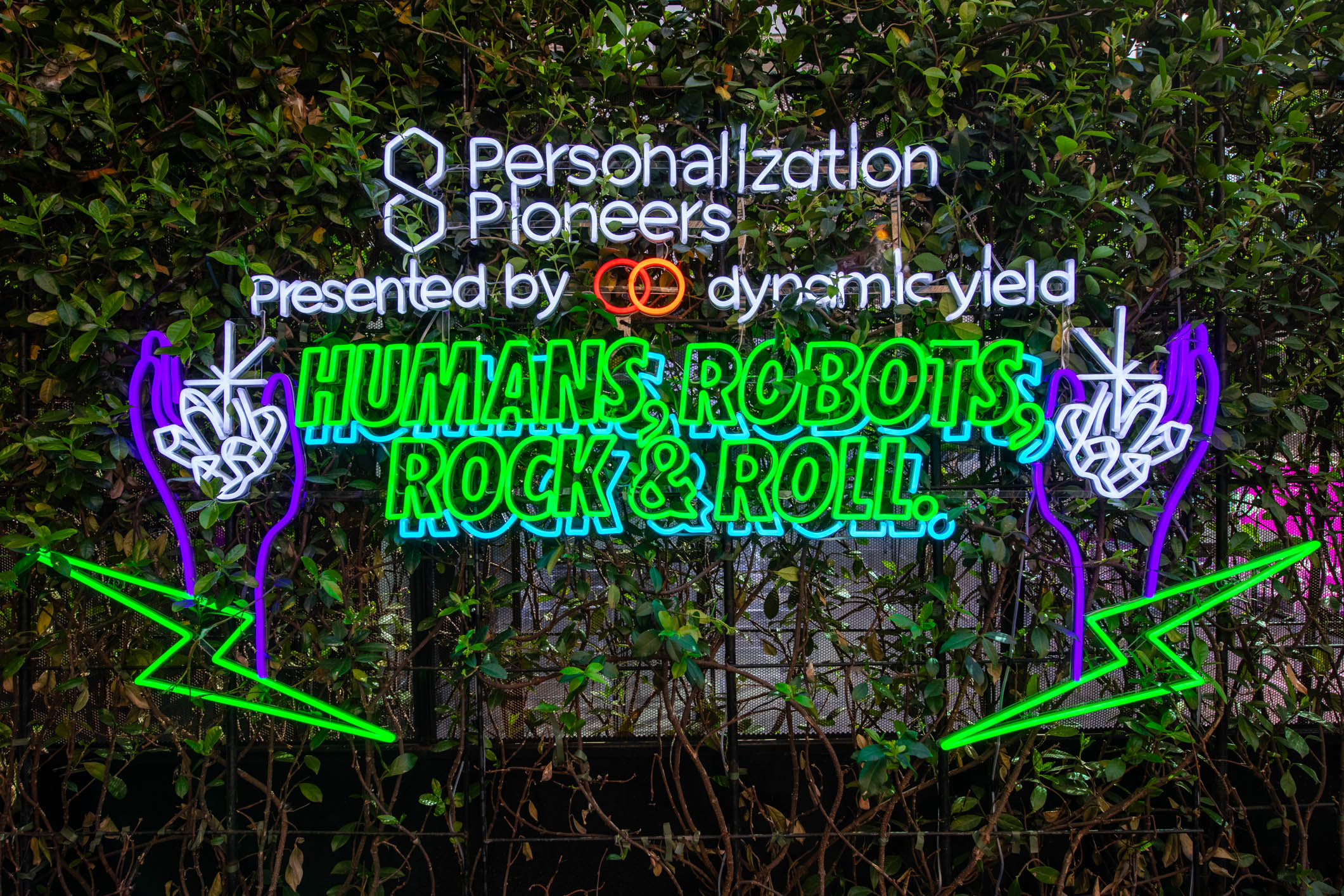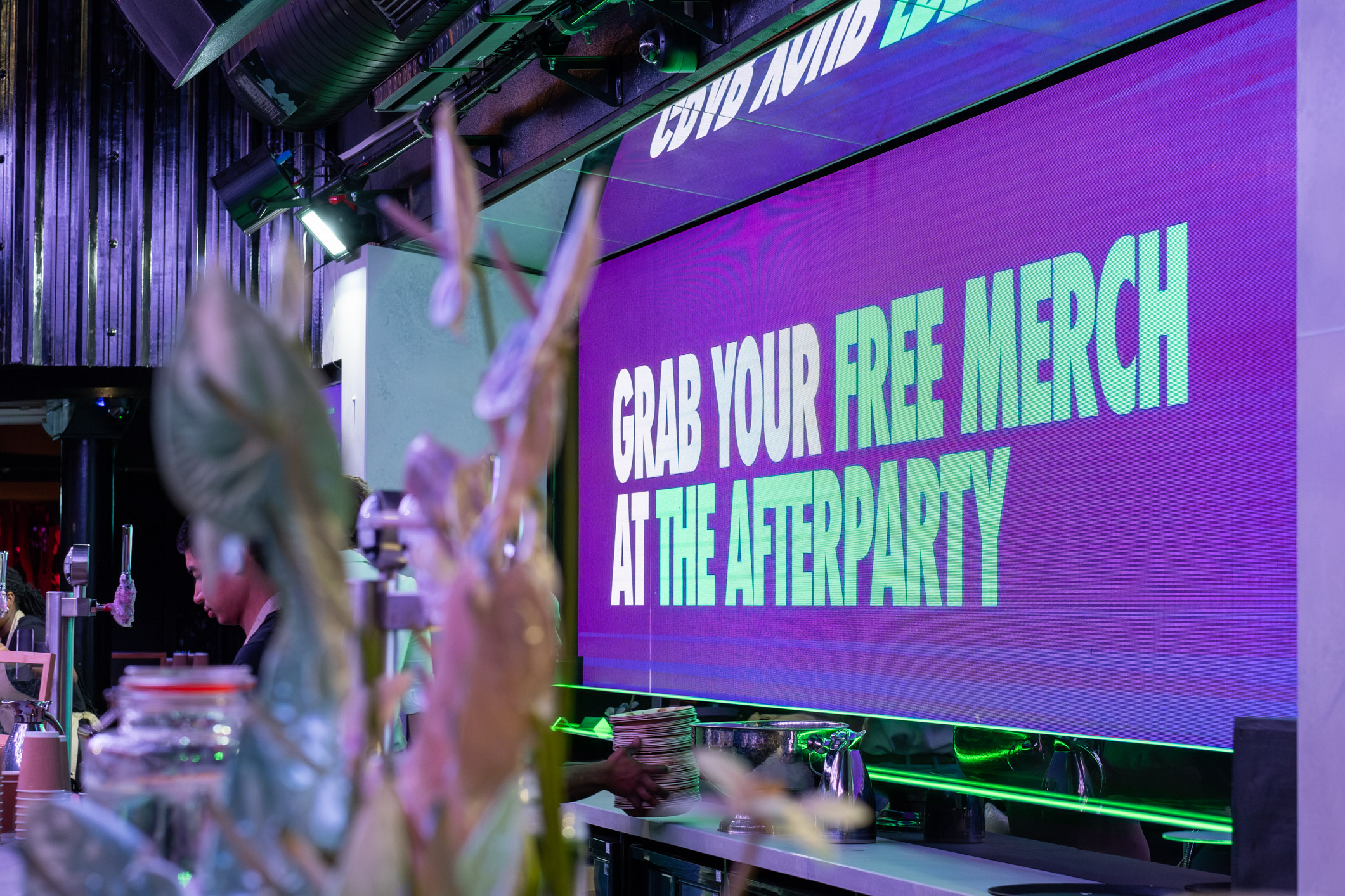 The Box acted as the central conference space, set in a theatre layout with a fully branded stage backdrop. Dynamic Yield made strong use of the venue’s AV capabilities, carrying their brand colours across screens and lighting to create a cohesive visual identity during the conference sessions.