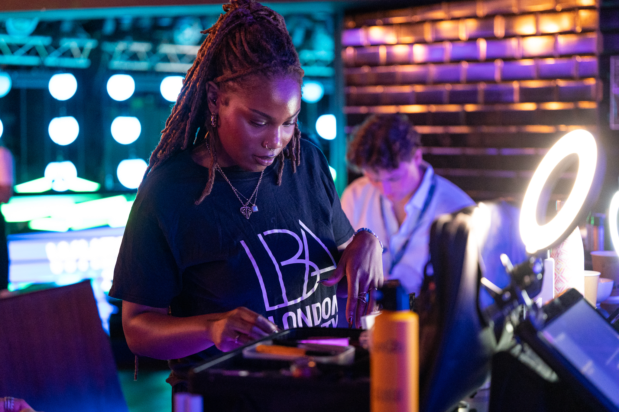 The second day focused on the conference sessions and speaker programme. The Box was set in a theatre layout, with a custom backdrop behind the stage and lighting reflecting the festival’s brand colours. This created a cohesive visual identity while supporting AV needs for keynotes and panels. Notable speakers included Mary Robinson, Dale Vince, Christopher Engman, and Nico Rosberg, who delivered insights across sustainability, energy innovation, and business strategy.